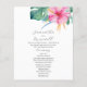 Estes programas de cerimônia de casamento tropical apresentam uma flor de hibisco rosa vibrante com folhas de palma de monstera. Use os campos modelo para adicionar sua ordem de serviço. A folha de papel é revertida para uma cor cor rosa fuchsia correspondente. Uma opção botânica para jardins e casamentos de destino. Para ver mais designs como esta, visite Do Tell A Belle no Zazzle, em www.zazzle.com/dotellabelle Arte a aquarela exclusiva e design por Victoria Grigaliunas.
