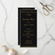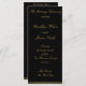 Cartão de rack para programas de cerimônia de casamento elegante em preto e ouro com texto personalizável