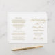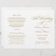Os programas de cerimônias de casamento elegantes de ouro branco e antigo incluem um monograma florescido com script de caligrafia vintage e sotaques de design de rolagem. Personalize o texto personalizado da sua festa noiva, informações sobre cerimônia e mensagem de obrigado. Nota: esses programas de papel de peso de texto chegam achatados e exigem a dobragem para montagem.