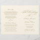 Os programas de cerimônia de casamento do marfim e do ouro de champanhe incluem um monograma florescido com script de caligrafia vintage e sotaques de design de rolagem. Personalize o texto personalizado da sua festa noiva, informações sobre cerimônia e mensagem de obrigado. Nota: esses programas de papel de peso de texto chegam achatados e exigem a dobragem para montagem.