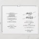 Elegante, Programas Românticos de Casamento de Caligrafia (Preto): Seus convidados adorarão seguir com sua ordem de serviço de casamento com este programa romântico de cerimônias de caligrafia/tipografia em azul empoeirado. Estas serão desdobradas (sem dobras). A cor design está definida como preta, mas você pode alterar a cor do design alterando a cor de fundo. **HOW TO CHANGE YOUR DESIGN COLOR** 1) Clique no botão "Personalizar". 2) Clique no link "ClICK TO CUSTOMIZE FAIORE" (ClICK PARA PERSONALIZAR MAIS) na parte inferior. Então você terá a opção de mudar sua "COR DE FUNDO" para sua cor de casamento. Não se esqueça de mudar a cor do texto para corresponder ao seu design.