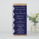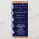 Os programas verticais de casamento têm um fundo de marinho e um local impresso e design de burlap ao redor das bordas. Adicione sua ordem de casamento de cerimônia e informações de festa de casamento à frente e ao fundo do programa. Você pode adicionar ou excluir qualquer campo de texto do botão "Personalizar".