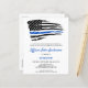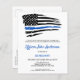 Convites de Promoção da Polícia Thin Blue Line. Celebre a promoção do seu oficial de polícia e convide amigos e familiares para a sua festa de aplicação da lei com este moderno Convite de Promoção da Polícia da Bandeira Thin Blue Line. Design da bandeira americana dos EUA em cores da Bandeira da Polícia, design moderno preto azul branco. Este convite de promoção de oficial de polícia também é perfeito para cerimônia de promoção do departamento de polícia e festa. Estes cartões-postais de convite de aposentadoria econômica precisam ser enviados como cartões-postais superdimensionados, podendo incorrer em taxas de correio padrão, mas não precisam de envelope ou etiqueta de endereço de devolução. Veja nossa coleção para presentes de promoção da polícia, brindes de festa de promoção da polícia e suprimentos. DIREITOS AUTORAIS © 2021 Judy Burrows, Black Dog Art - Todos os Direitos Reservados. Convite Econômico de Promoção da Polícia Thin Blue Line