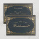 Possui uma moldura vintage com elegantes decorações barrocas douradas sobre um fundo azul-marinho escuro.