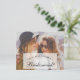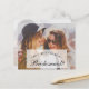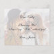 O fundo de ambos os lados é uma foto de duas mulheres com óculos de sol falando e rindo, da StockSnap do Pixabay, livre para uso comercial. Na frente, há um retângulo branco transparente menor com o texto "[Nome] você quer ser minha Dama de Honra?" nele. No verso, toda a foto é coberta com branco transparente, e sobre ela há uma mensagem caligrafada.