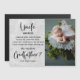 Peça ao seu irmão, primo ou melhor amigo para ser o padrinho do seu filho com este cartão com fotos magnético. Cartão moderno único com 2fotos, script de caligrafia, sua mensagem em um fundo de textura de mármore.