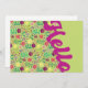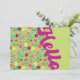 Dividir a placa de saudação 'Hello' de design com um impressão de bloco ousado de flores de proteína estilizadas em negrito, cores brilhantes em um fundo verde vívido. Bonito, minimalista, boho design para mostrar seus obrigados. Eu adoro ver meus designs no mundo - me colocar no IG @parry_vegan.