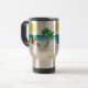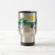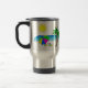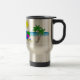 Copos tropicais com o guarda-chuva brilhante e de Cheeful de praia, as palmeiras e a luz do sol nos adultos temáticos dos copos da prova do derramar das canecas de café da praia. Os trabalhos artísticos originais por Linda pequena Pinda podem somente ser encontrados aqui.