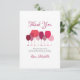 Provando De Vinho Obrigado Cartões. Tire a tábua de queijo! Dê uma surra na sua festa com esse cartões de agradecimentos temido de provando de vinho. Este design apresenta um copo de vinho tinto monocromático sobre fundo branco. Há material e decorações adicionais disponíveis em Metro-Event.com e Metro-Events no Zazzle.