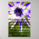 Uma macro-flor roxa bonito inspirada no verso bíblia "Ela está vestida com força e dignidade, e ri sem medo do futuro. Quando ela fala, suas palavras são sábias, e ela dá instruções com gentileza. Provérbios de 31:25-26"