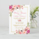 Cartão de Convite para Chás de fraldas Floral Dourado Blush, Cor-de-Água Rosa - Script Rosa - Quadro Dourado