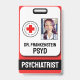 Personalize este crachá psiquiatra falso. O crachá diz: Instituição estatal para os Criminalmente Insanos. Perfeito para o Halloween! Confira o resto desta coleção para obter mais props de Halloween de Asilo Insano.