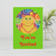 Querida Groovy! Um gato listrado amarelo e laranja com bigodes giratórios e um fundo de arco-íris psíquico com padrão. Convite com um design personalizável amarelo, laranja, vermelho, azul, verde, rosa, roxo e branco para você personalizar com seu próprio texto, imagens e ideias. O texto pode ser facilmente alterado usando o modelo fornecido ou clique no botão 'Personalizar o texto' para fazer outras alterações. Um desenho de lápis colorido digitalmente melhorado por Jess Perry.