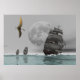 Pteranodon nos navios e na Poster da Lua, fantasia mística, fantasia de novos mundos, abstrato, mitologia grega, mitologia romana, surreal abstrato, fantasia, sonhos, mundos, mundo, terra, fantasia mística à luz do dia, fantasia de novos mundos, abstrato, mitologia grega, mitologia romana, fantasia, sonhos, mundos mundo, surrealismo, dois, terra, luz do dia, tarde, cidade, paisagem, surreal, parede, vintage, lua, fundo