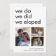 Uma na moda para que seus amigos saibam do seu elogio e os convidem para se juntarem a você para uma celebração de posto! A tipografia simplista que nós fizemos foi empolgada está na frente em preto, abaixo da qual você adiciona suas 3 fotos favoritas do seu casamento, e personaliza seus nomes, e data e local de sua cerimônia. No verso, personalize-se facilmente com seus detalhes de anúncio e convite.