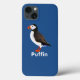 Uma pintura digital de um Puffin Atlântico. A leitura de texto "Puffin" também é exibida. A Puffin do Atlântico (Fratercula arctica) se alimenta principalmente por mergulho na água. Criam-se em grandes colônias em penhascos costeiros ou ilhas offshore no Atlântico Norte. Eles derramaram as partes coloridas das suas contas após a época de reprodução, deixando um bico menor e mais aborrecido. Suas asas curtas são adaptadas para nadar com uma técnica voadora sob água. No ar, batem suas asas rapidamente (até 400 vezes por minuto) em um voo rápido, muitas vezes voando baixo sobre a superfície do oceano.