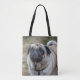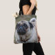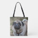 Uma bela fotografia de um cachorro fofo impresso em ambos os lados de uma bolsa de tote.
