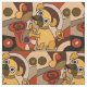 O cão de filhote de cachorro engraçado maravilhoso do pug está jogando o saxofone neste design original do tecido do abstrato da arte do divertimento.