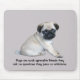 Os Pugs são reconhecidos para suas uniforme-têmperas, personalidades brincalhão, e suas disposições que parte, loving. A razão do Pug para a vida é estar perto de suas pessoas e satisfazê-las, e seu sturdiness faz-lhes um favorito da família. Os Pugs são o cão do companheiro por excelência; têm um grande sentido de humor e adore crianças. Os Pugs fazem sons peculiares bem como bebês humanos; ressonar, roncando e grunhir. Os Pugs são curiosos por natureza e segui-lo-ão em torno da casa para ver o que você está fazendo. São confortáveis em apartamentos pequenos porque precisam o exercício mínimo, mas a raça pode adaptar-se facilmente a todas as situações. O Pug derrama, mas seu casaco curto exige pouco que prepara. Estes quadrado e raça cobby vêm na jovem corça, na jovem corça de prata, na jovem corça do abricó ou no preto, com uma "máscara bem definida" em seu focinho. Um cão popular do companheiro, o pug igualmente prima no anel da mostra. Este é um presente perfeito para você ou todo o amante do Pug que você souber.