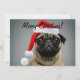 Pug No Cartão De Férias Planas De Chapéu De Natal