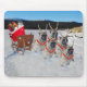 Uma imagem comprada foto de um grupo de pugs com os antlers da rena que puxam o trenó do papai noel enchido com os presentes.