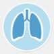 Pulmonologia ou pulmonólogo, com adesivos pulmonares redondos, apresentando um contorno azul de um par de pulmões humanos com contorno branco sobre um fundo azul claro com borda branca. Para solicitações personalizadas ou ajuda na personalização, use o link de contato de armazenamento acima.