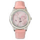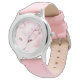 Banda de relógio de couro rosa mostra um gatinho gentilmente.