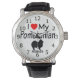 Este belo relógio com a frase "Eu amo meu pomerano" é perfeito para qualquer um que tem um cão Pomerano, apenas adicione o nome do seu próprio cão.
