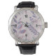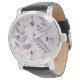 Este relógio de pulso na moda apresenta um belo design floral roxo com tons pastéis suaves. Um acessório perfeito para o veste cotidiano e um presente pensativo para aniversários, aniversários ou ocasiões especiais. O aspecto botânico mínimo adiciona elegância e charme, fazer uma peça de eterno para qualquer roupa. Design gerado pelo Ai