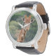 Pulso Girafa diz "Queijo" com grande relógio de sorriso