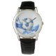O relógio clássico de couro preto mostra um impressão gráfico de uma bola de futebol. Escolha esta monitorização a partir de vários estilos. Personalize este relógio ou comprar como está.