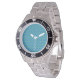 Um na moda Classic Stainless Steel Wrist Watch, com um padrão de cromo decorativo na tendência de Mônaco Blue e Emerald Green.