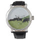Relógio de Couro Negra. Personalize seu produto adicionando texto! Visite www.zazzle.com/lsarmentoart para obter mais designs exclusivos.