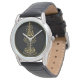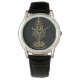 Relógio clássico de couro preto, impresso com caligrafia original e moderna islâmica de "O Verso da Luz" - Ayat al Nur, conforme revelado no verso 35 de Surah al Noor, Capítulo 24 do Alcorão Sagrado do Islã.