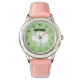 Relógio do garoto bonito com fazenda de ovelha e nome de criança. Relógios de pulso personalizáveis para meninos e meninas. Bela ideia de aniversário ou presente de Natal para crianças ou netos como netos. Coral e cores verdes. Mais cores disponíveis.