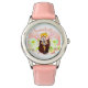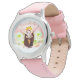 Relógio de couro rosa, de aço floral, bonito, com panda vermelha / mãe menor panda segurando seu bebê. Personalize com seu nome. Você pode encontrar produtos de panda vermelho na minha loja.
