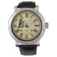 Um relógio de pulso personalizado legal que tem um toque sinistro escuro, apenas adicione um nome para torná-lo pessoal para você. Este design de cara de relógio vintage será um sucesso com todos os fãs de terror, filme noir e histórias de suspense.