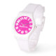 Saia na multidão com este relógio de pulso rosa ultra quente, personalizado com nome ou texto, em néon brilhante, fluorescente, rosa-quente. Faça uma declaração giratória divertida e fresca com esta moderna fuchsia rosa-rosa-quente e relógio branco.