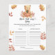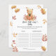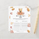 Celebrar com esta festa de chá de fraldas do ursinho de outono! Ursinho de pelúcia bonitinho com uma abóbora de outono nas patas do outono. No verso do cartão estão as folhas do outono. Itens correspondentes disponíveis.