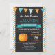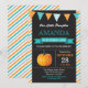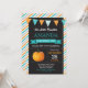 Convite de Aniversário para Rapazes. Pequeno Pumpkin Cai Aniversário Convide. 1rua Primeiro Aniversário. Bandas de turquesa laranja e aqua, fundo do quadro. Para mais personalização, clique no botão "Personalizar" e use nossa ferramenta de design para modificar este modelo.