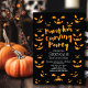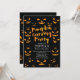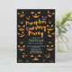 Convidado do Partido das Bruxas de Esculturas Modernas de Pumpkin apresentando faces laranja Jack O Lantern colocadas sobre um fundo preto com o moderno "partido esculpido de abóbora" na tipografia laranja gradiente. Sacudir que a nossa festa do halloween convide para ver um toque especial extra.
