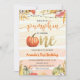 Projetado para nossa coleção Little Pumpkin, este Cartão de Convite personalizável apresenta fundo laranja, abóbora verde e laranja, texto brilhante dourado e folhas douradas com fontes de escrita manual. Itens correspondentes disponíveis.