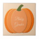 Este incrível azulejo apresenta uma imagem de arte digital de uma abóbora laranja fofa com 3 tons diferentes de laranja ficando mais escuros em direção às bordas da abóbora. Há um pé verde anexado ao topo. O design é um fazer neutro em relação ao gênero, é um design perfeito para celebrar um menino ou uma menina, especialmente no Dia de Ação de Graças. Há texto personalizado para que você possa incluir uma mensagem. Há texto personalizado para que você possa incluir uma mensagem.