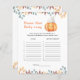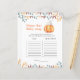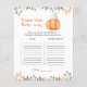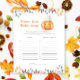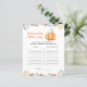 "Uma abóbora está a caminho. Celebrar com este filhote de abóbora de desenho animado temido para festa de chá de fraldas! Bomba de desenho agudo kawaii, de cor aquosa, com chapéu de outono (boné) e folhas de outono. No verso do cartão estão as folhas do outono.