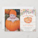 Primeiro Convite de Aniversário da Pumpkin com fotografia personalizada. Garota ou Convite de aniversário de queda. Flor Floral de Aquarela e Fundo de Madeira Rústica. Rosa ou Laranja. 1rua, Primeiro Convite. segundo 13º 5 4º 6 8º 10º 7, Qualquer Idade. Para mais personalização, clique no botão "Personalizar" e use nossa ferramenta de design para modificar este modelo.