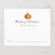A placa de atividade do chá de fraldas de abóbora de chic apresenta uma abóbora de aquarela simples e clássica. O cartão "Palavras de Sabedoria" incita os convidados a compartilhar conselhos para os pais se prepararem para o bebê. Personalize com a mãe o nome e a data do chá.