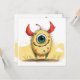 Ein freundliches, fröhliches Ein-Auge-Monster mit bunten Punkten und roten Hörnern. Perfekt für Kinderprodukte, Grußkarten oder Poster im Kinderzimmer – es bringt Spaß, Farbe und ein Lächeln in den Alltag.