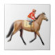 O design original das belas artes de um cavalo de raça de galope do puro-sangue pelo artista Carolyn McFann do estúdio de ronrom de dois gatos imprimiu em um azulejo da qualidade para aficionados desportivos equestres.