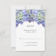 Elegant purple hydrangea wedding RSVP card on a white background.