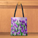 Tote bag with purple tulips, a floral design bag to add the beauty of nature’s bloom to your belongings and style.
